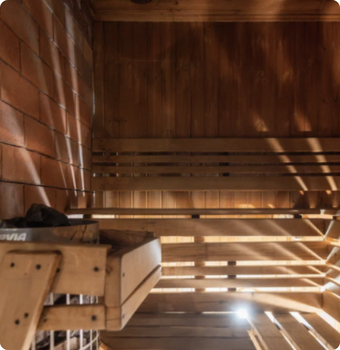 Сауна оборудована печью Harvia. Парилка вмещает до 6 человек. В распоряжении гостей бассейн и уютная зона отдыха с телевизором.